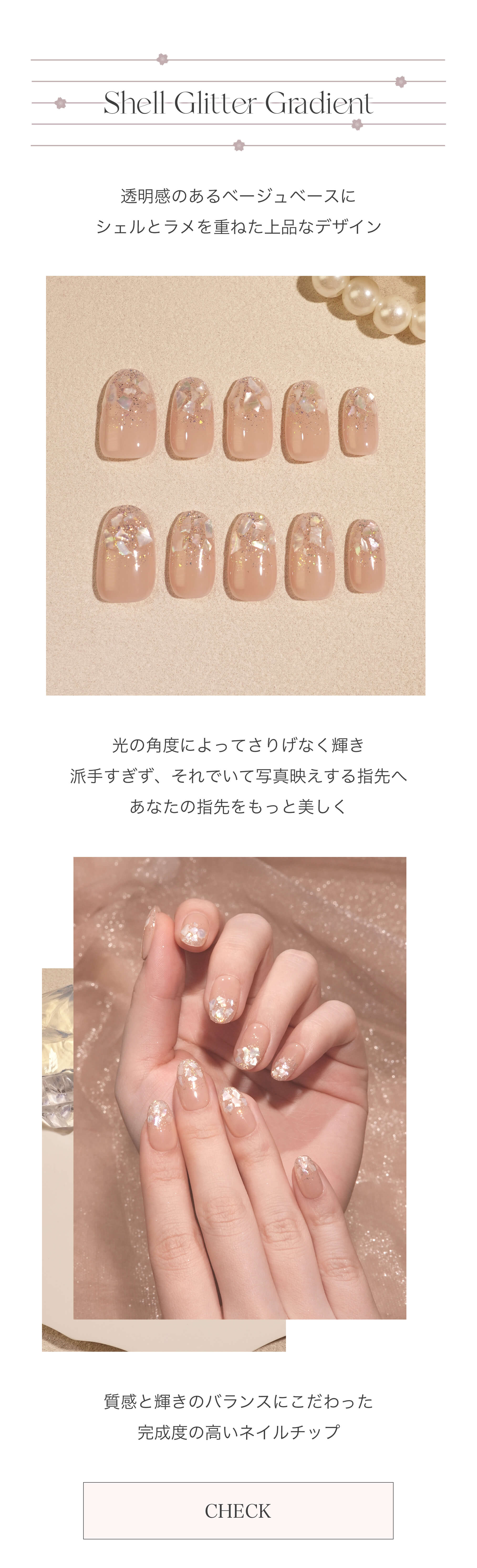 【当日発送】水光ネイルピーチベージュシェルラメグラデーションオーバルネイルチップ