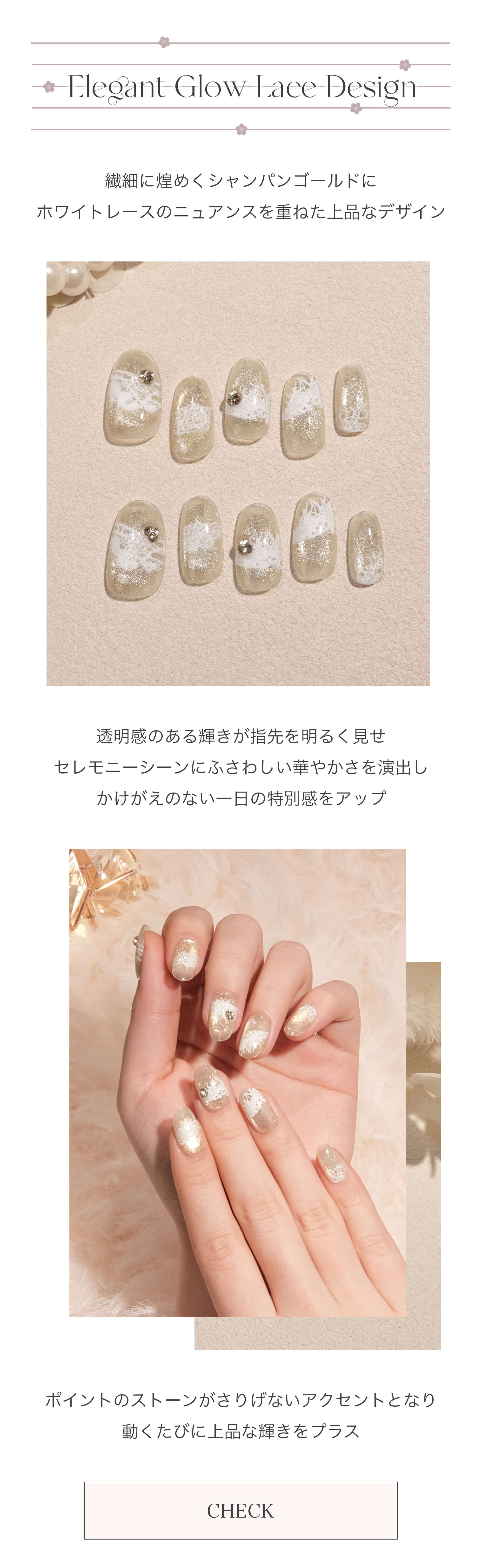 【当日発送】水光ネイルシャンパンゴールドマグネットホワイトレースストーンオーバルネイルチップ