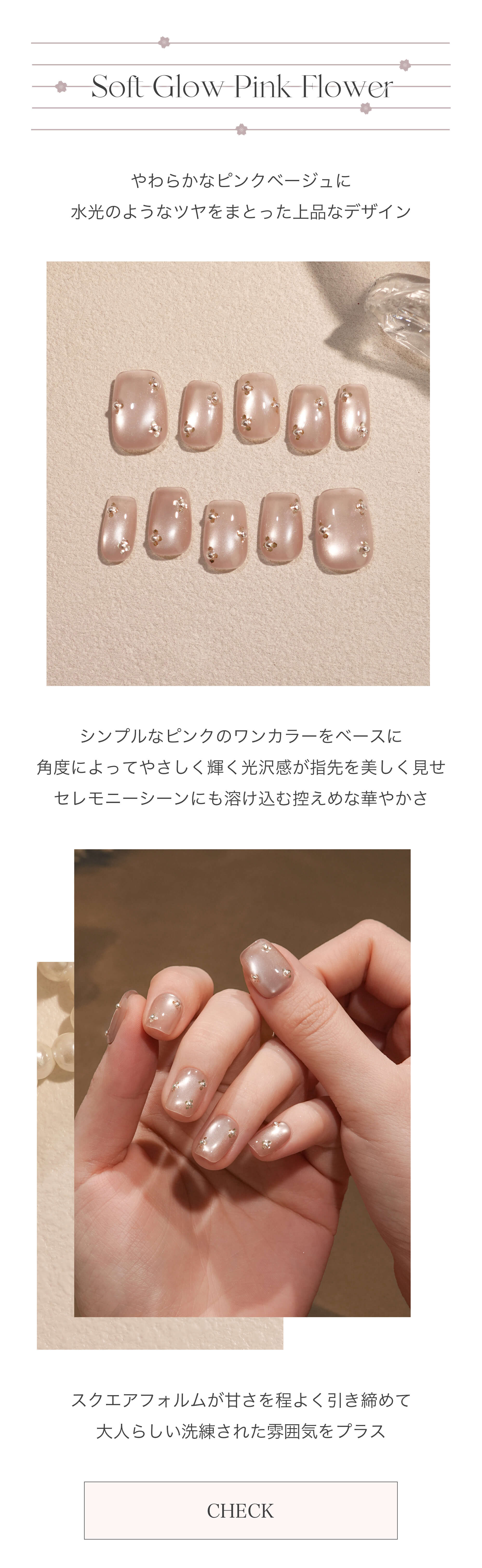 【当日発送】水光ネイルピンクワンカラーフラワーライクパールホロショートスクエアネイルチップ