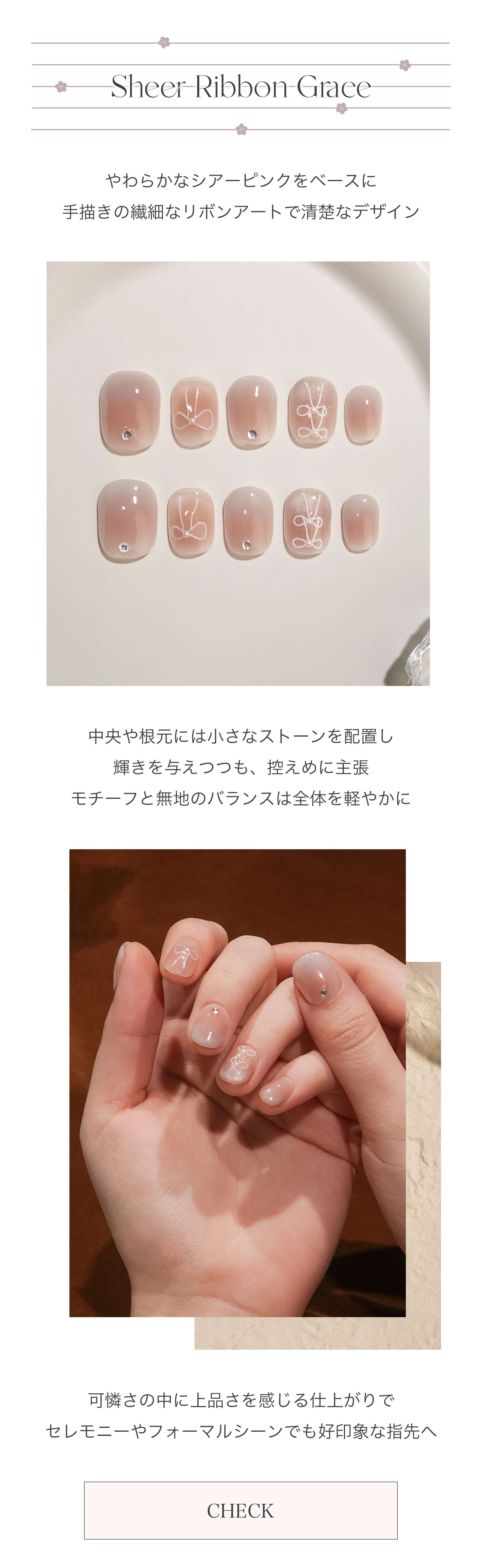 【一部当日発送】水光ネイルピンクチークリボンアートシルバーストーンショートラウンドネイルチップ