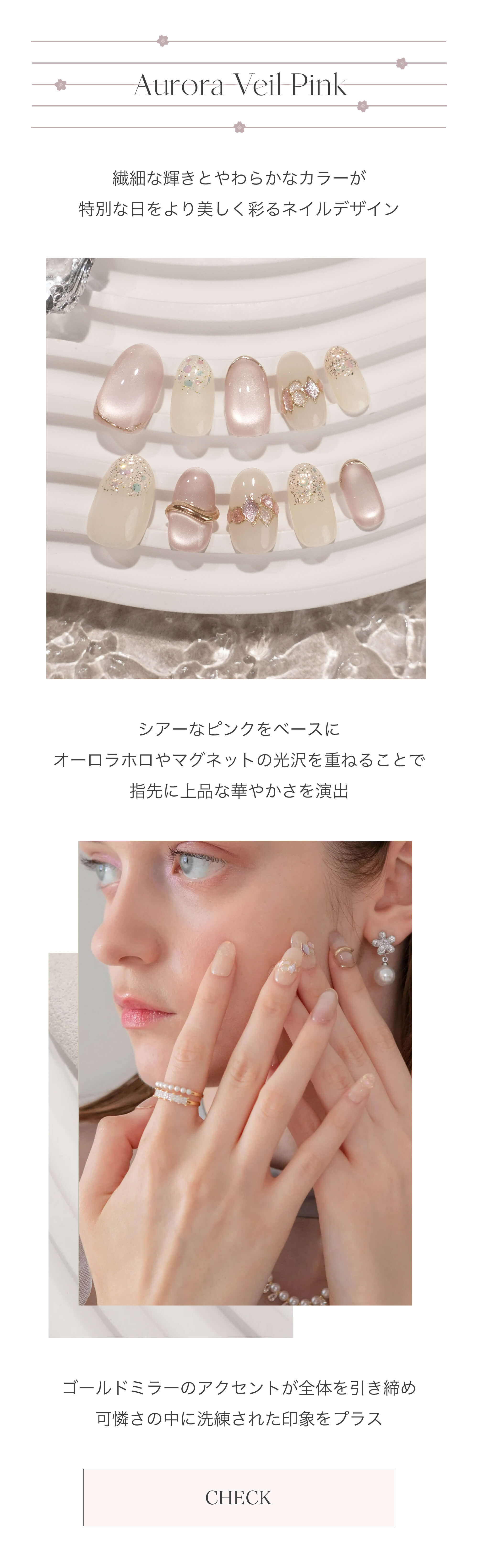 【予約販売】水光ネイルピンクマグネットオーロラストーンラメオーバルネイルチップ