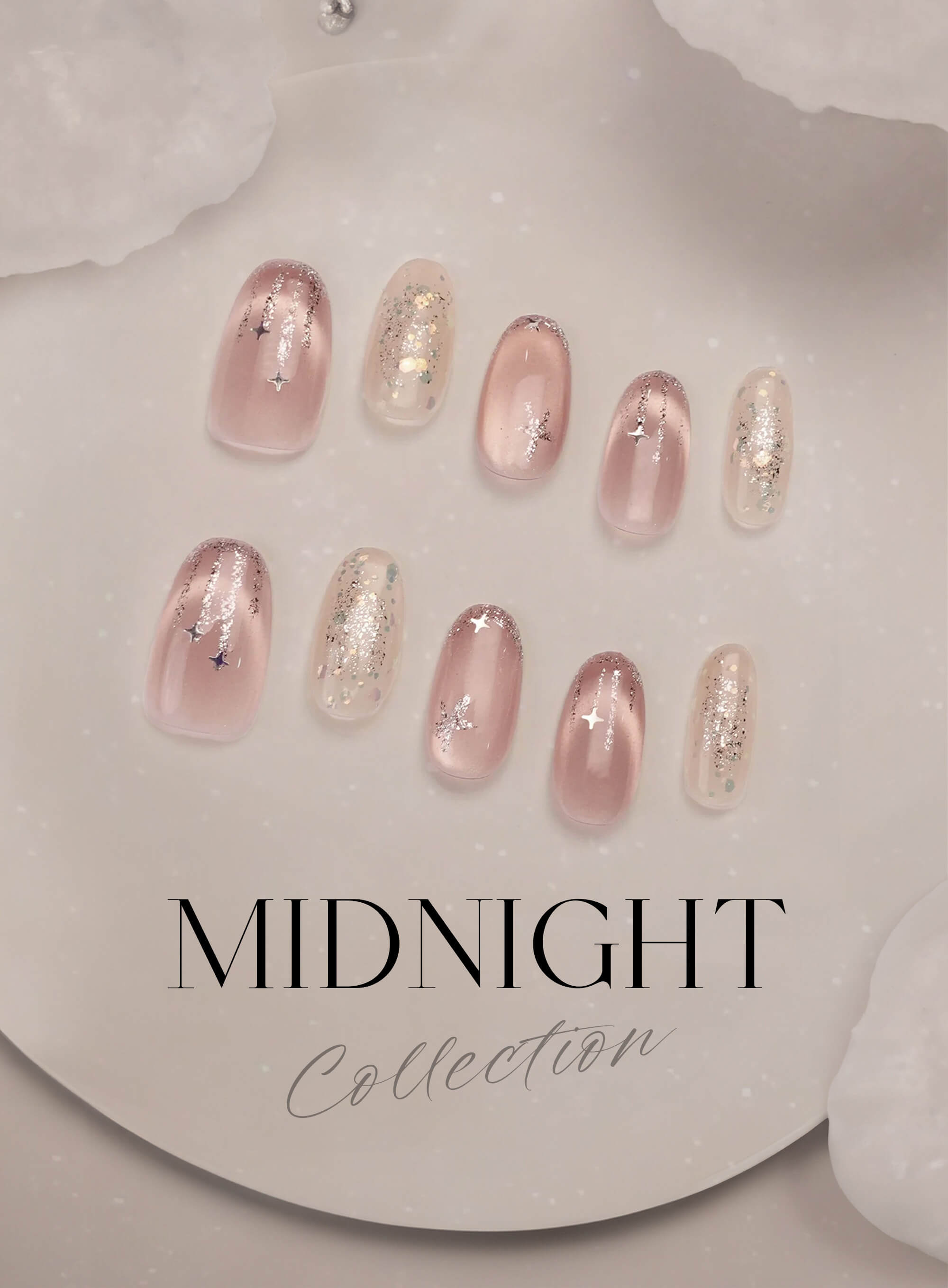 【SOLD OUT】水光ネイルゴールドマグネットクリアベージュラメオーバルネイルチップ