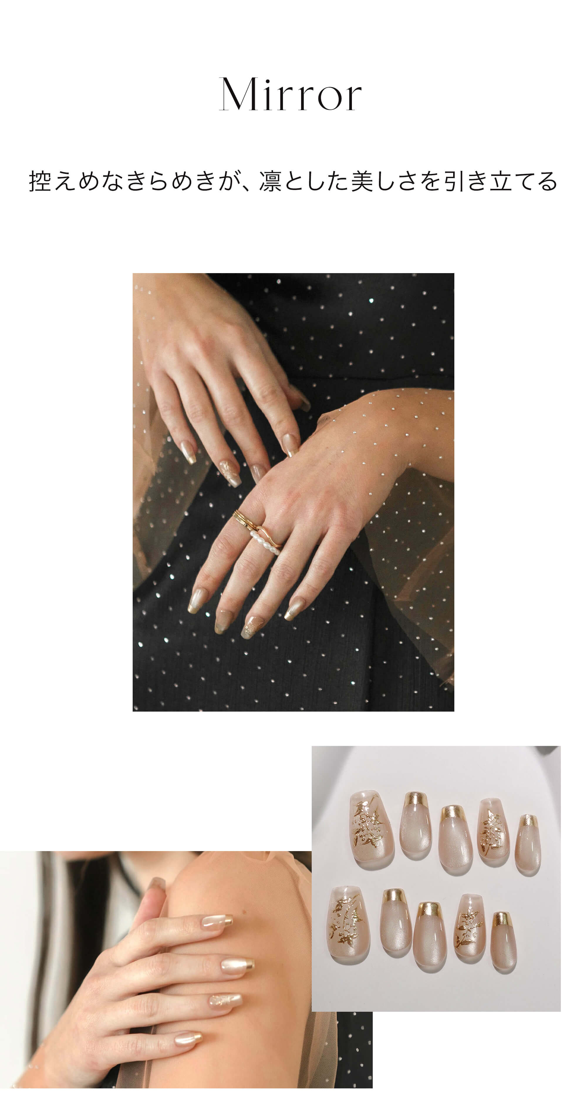 【当日発送】水光ネイルピンクマグネットフラワーシールゴールドミラーニュアンスVカットショートスクエアネイルチップ