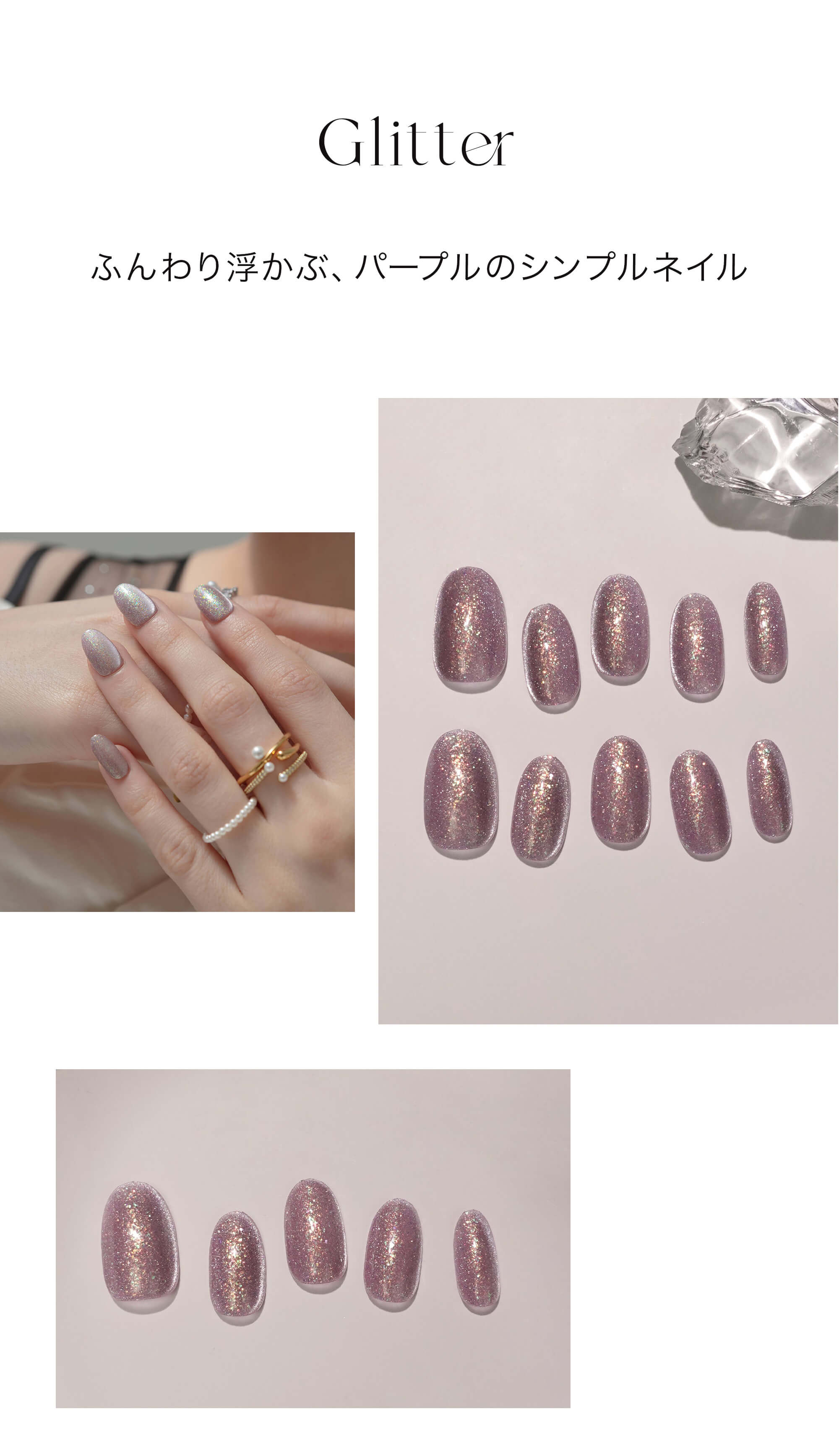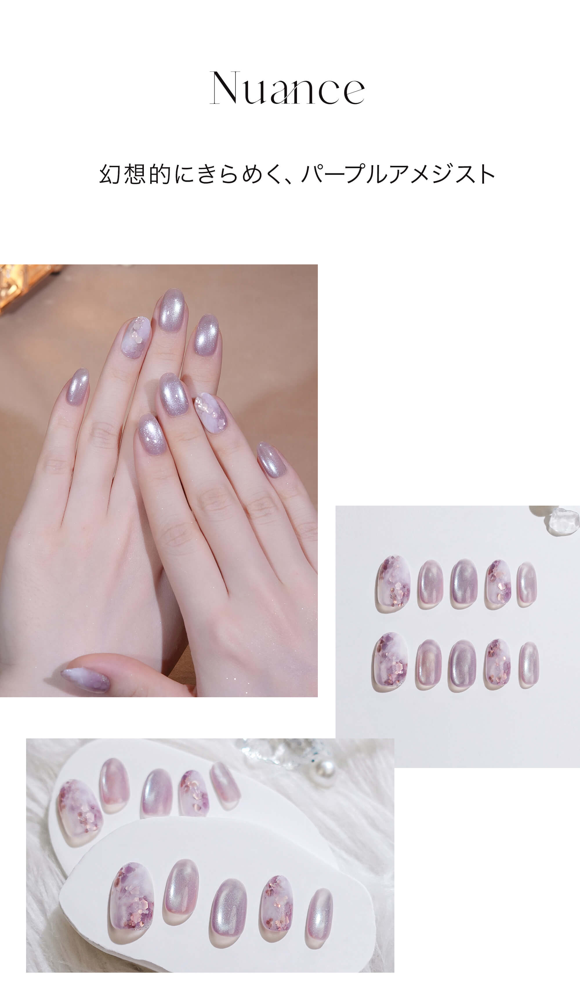 【当日発送】水光ネイルパープルマグネットタイダイホログラムオーバルネイルチップ