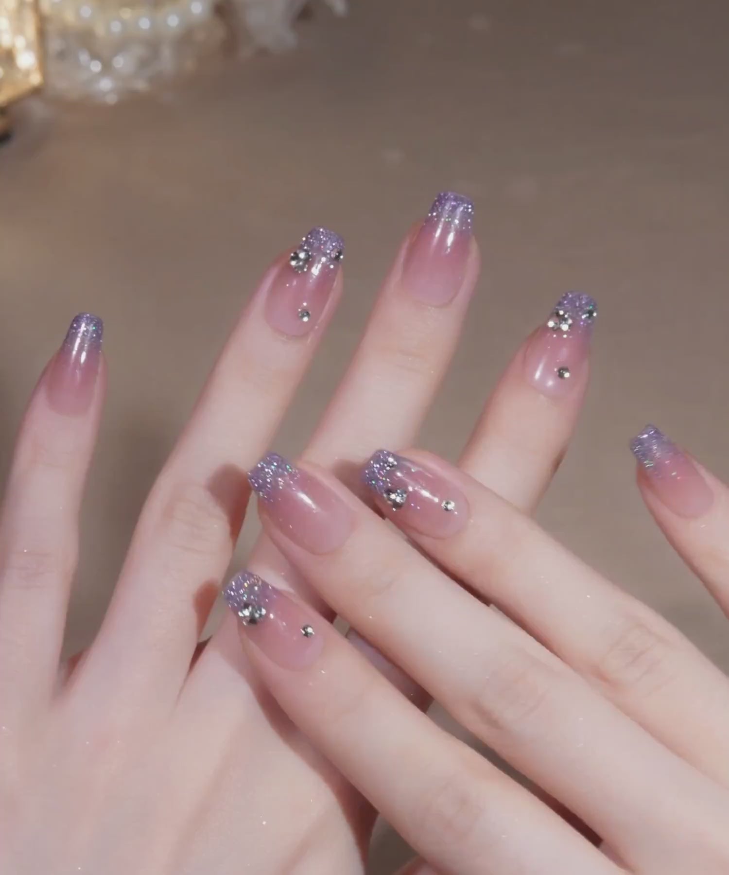 ポイント:ラメ,おしゃれ,ラグジュアリー,ワンホン,チーク,ピンク系,ブルー系,グラデーション,ストーン