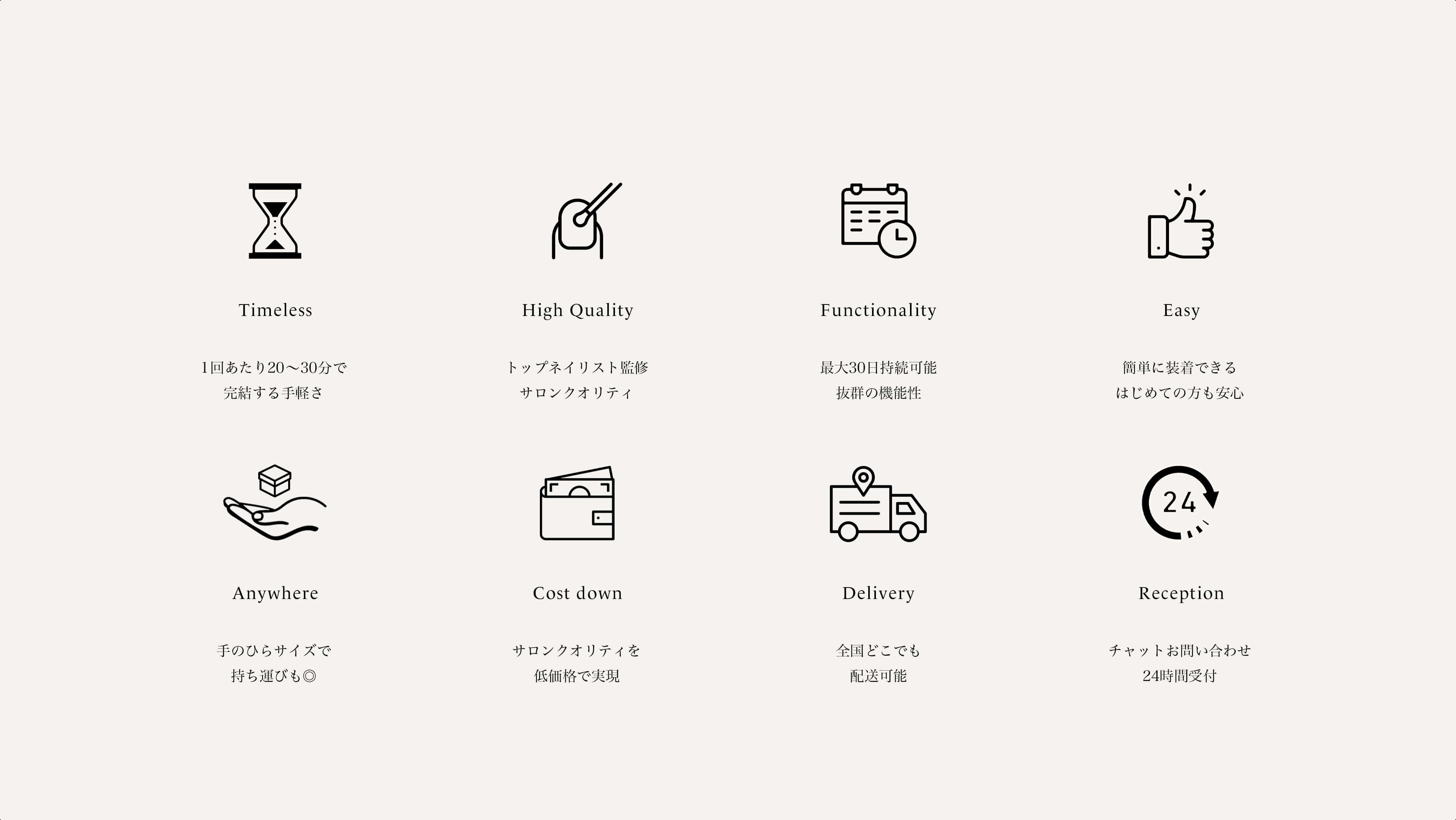 コストが高い・時間がかかる・持続しない・オフの手間・爪への負担など、今までのネイル体験は、様々な課題がありました。