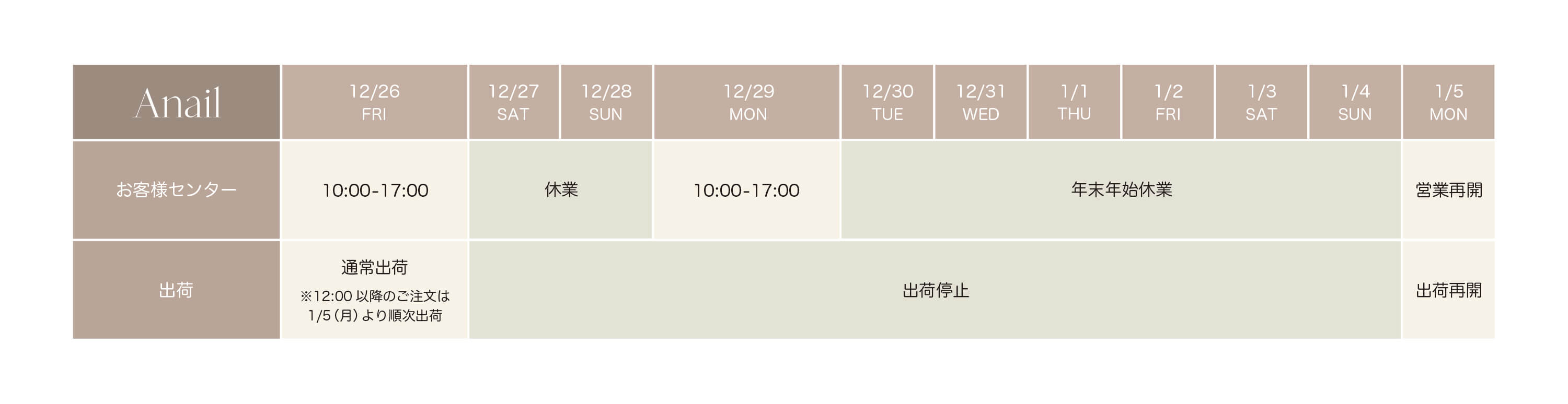 平素よりAnailオンラインストアをご利用頂き、誠にありがとうございます。