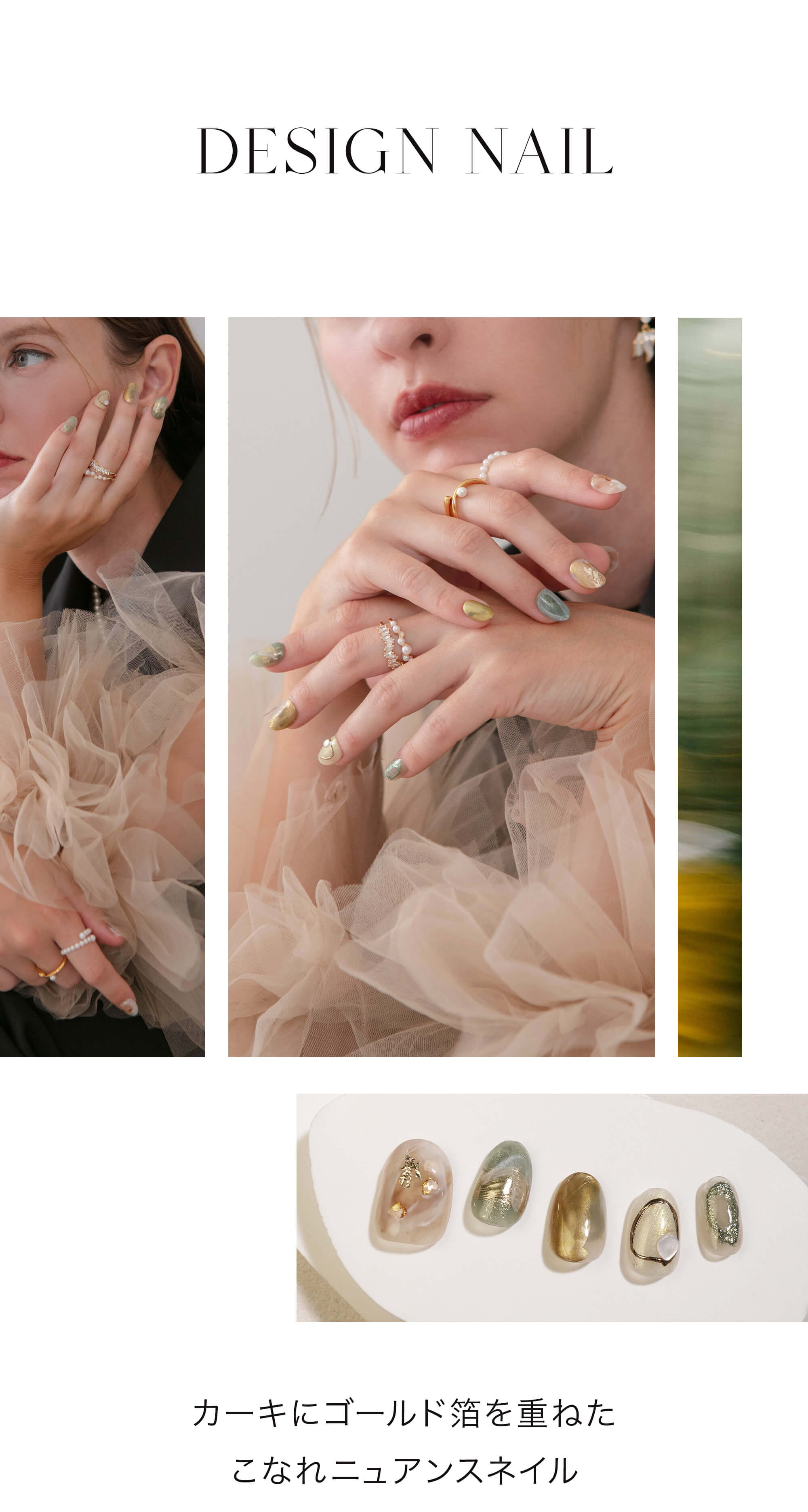 【当日発送】水光ネイルカーキゴールドホイルインクニュアンスショートオーバルネイルチップ