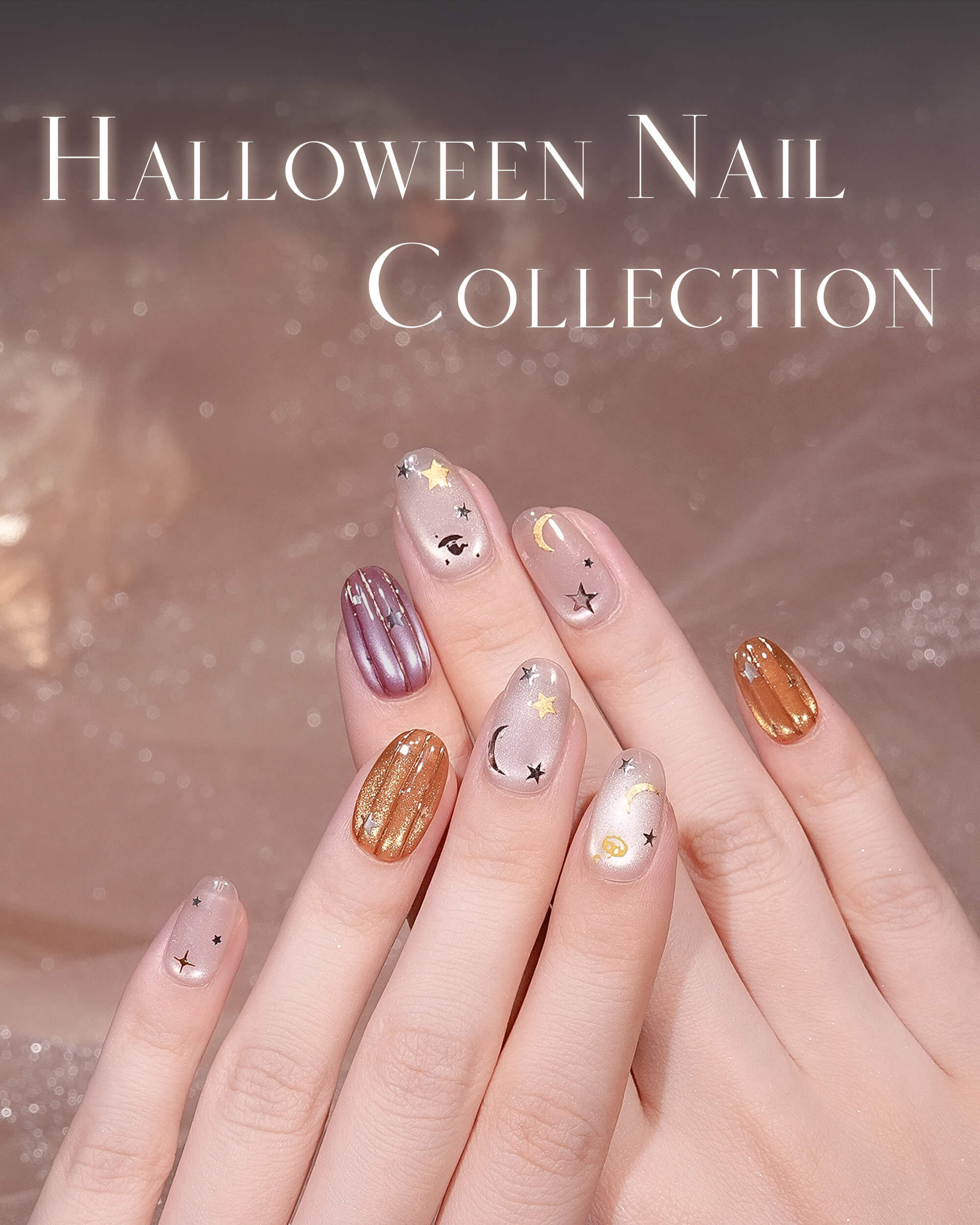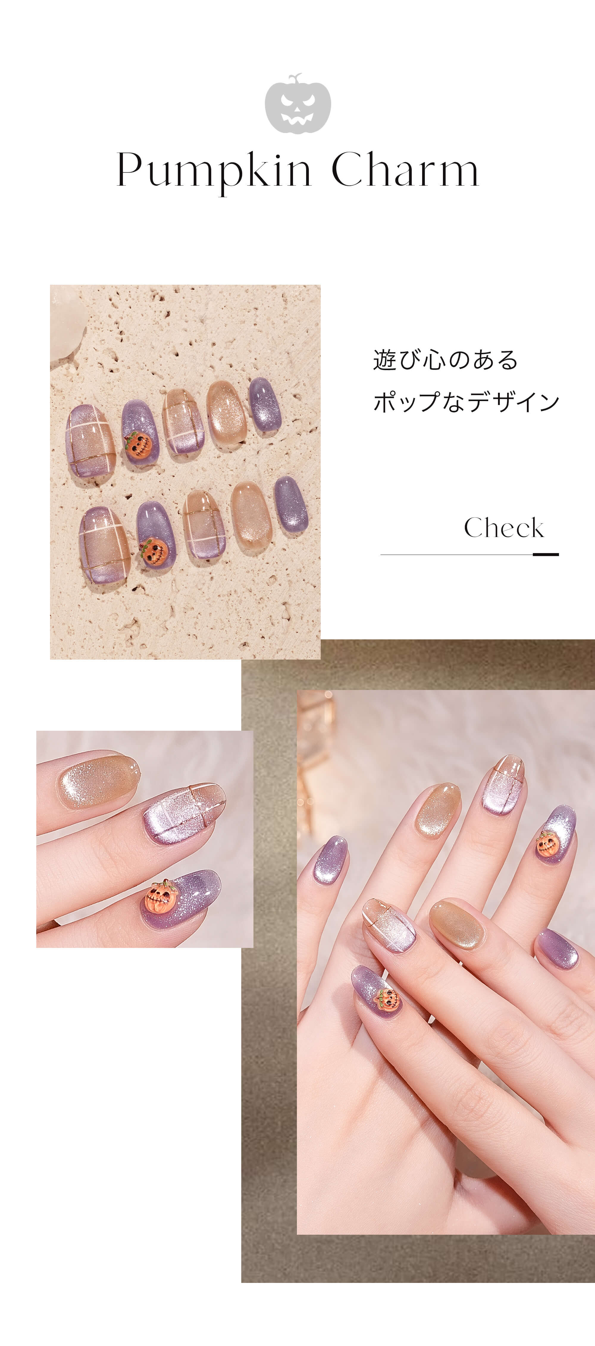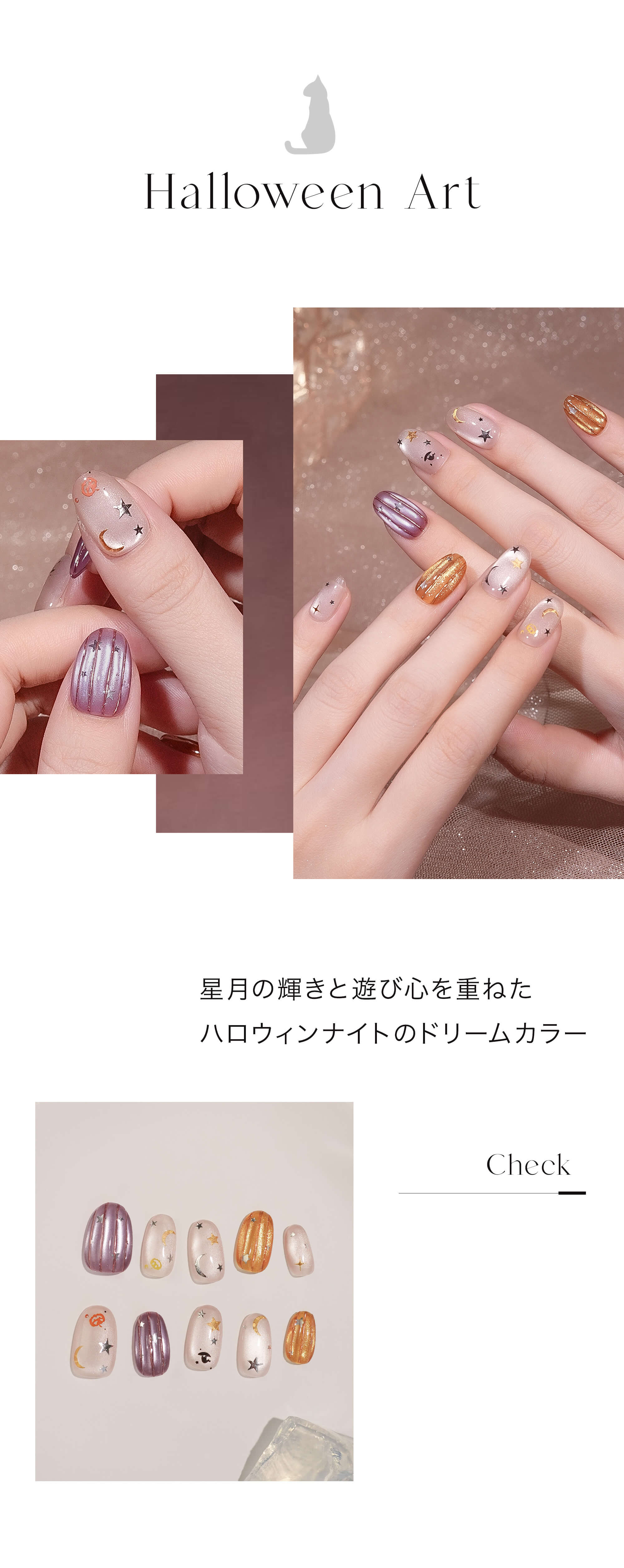 【当日発送】水光ネイルパープルオレンジマグネットハロウィンモチーフオーバルネイルチップ