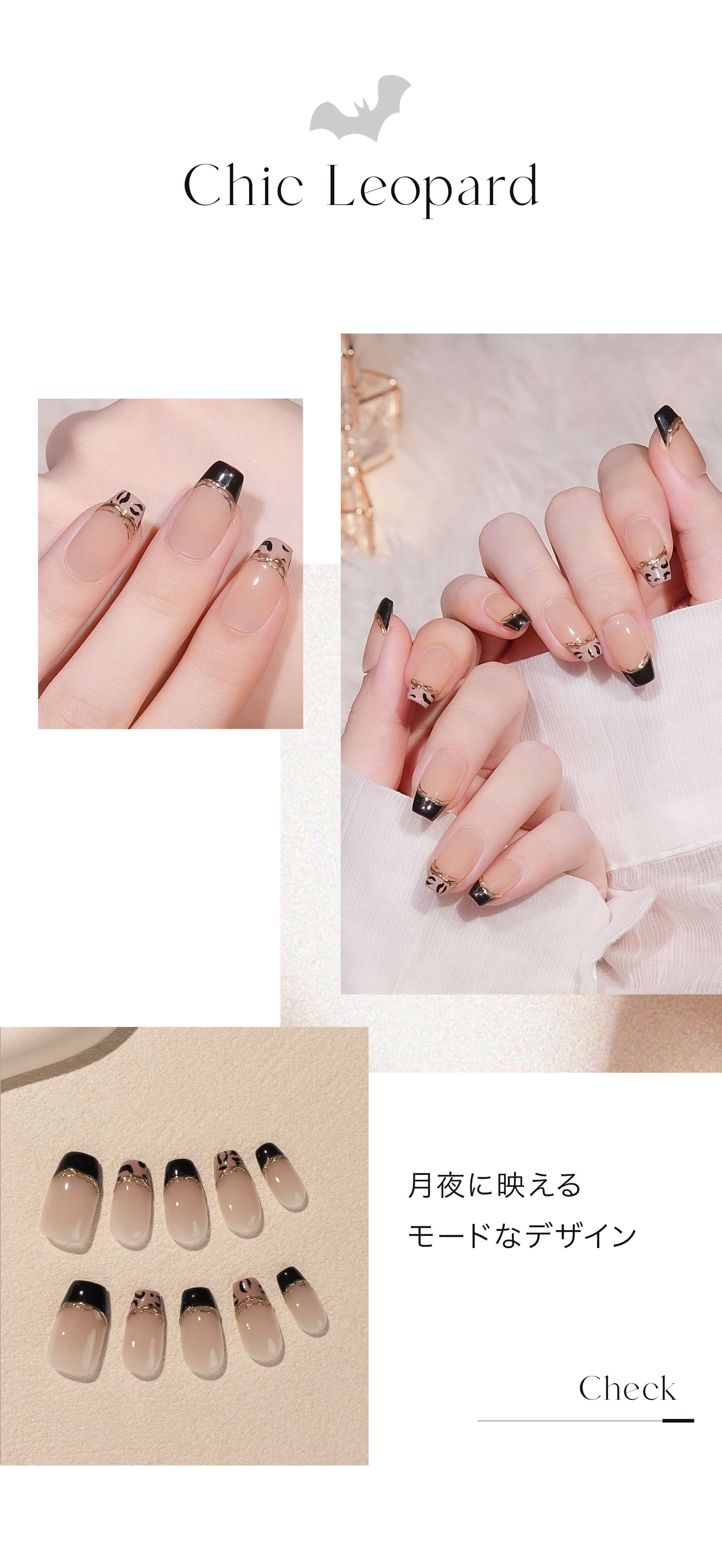 【予約販売】水光ネイルベージュブラックフレンチレオパードミラーラインバレリーナネイルチップ