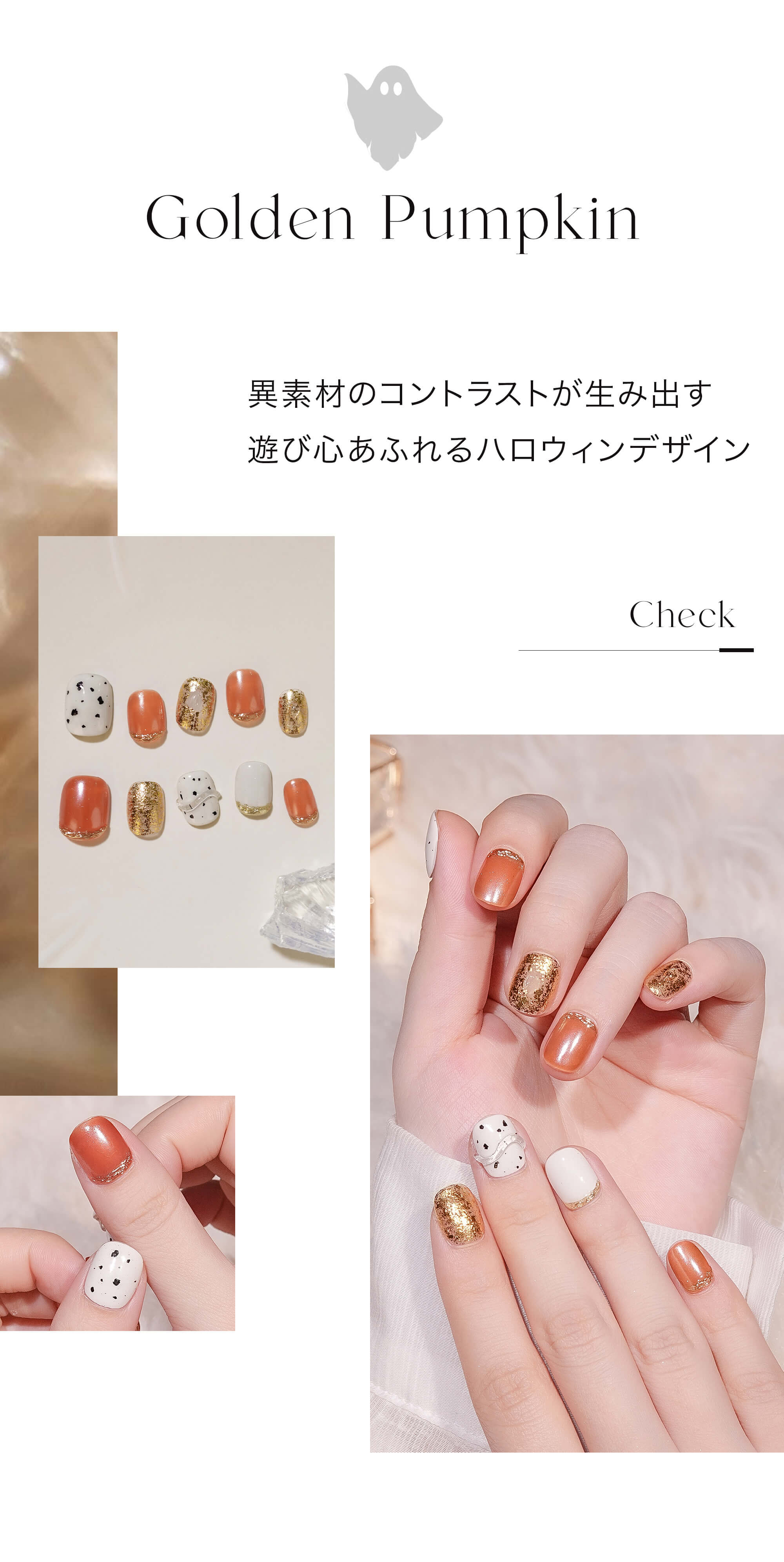 【当日発送】水光ネイルコーラルオレンジダルメシアンゴールドミラーショートラウンドネイルチップ