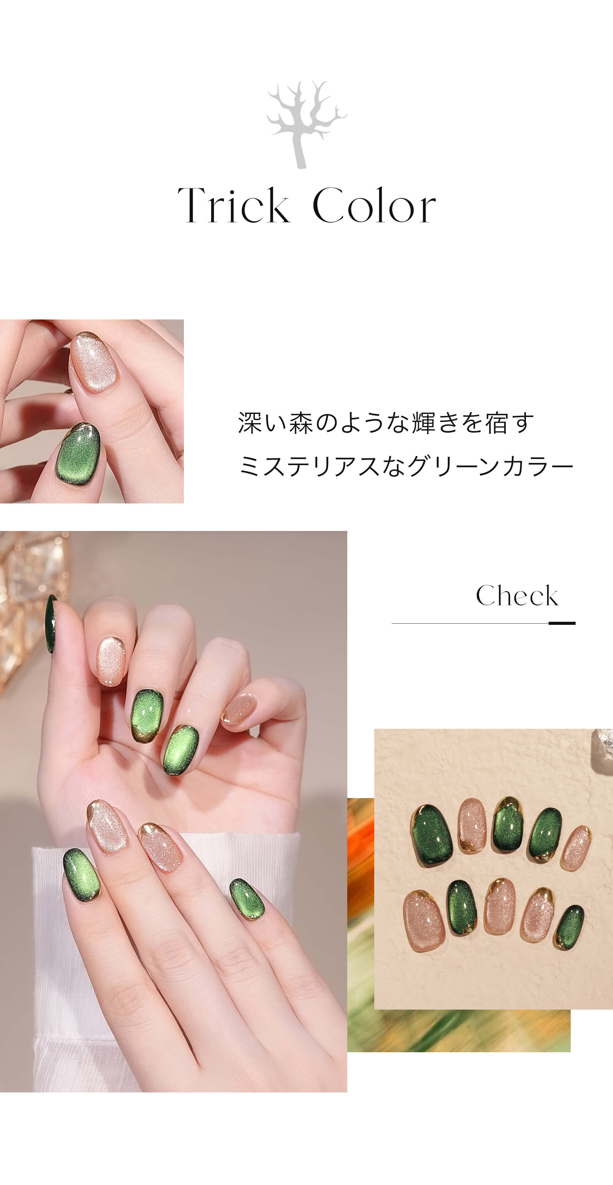 【当日発送】水光ネイルダークグリーンピンクマグネットゴールドミラーオーバルネイルチップ