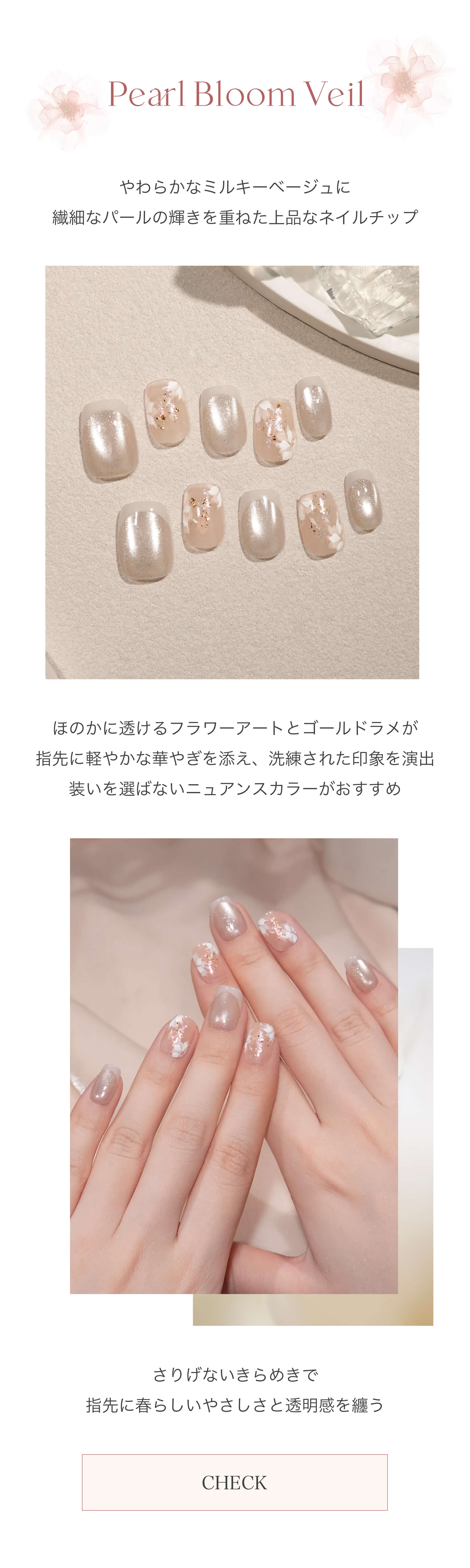 【当日発送】水光ネイルベージュマグネットブロッサムアートフレンチショートスクエアネイルチップ