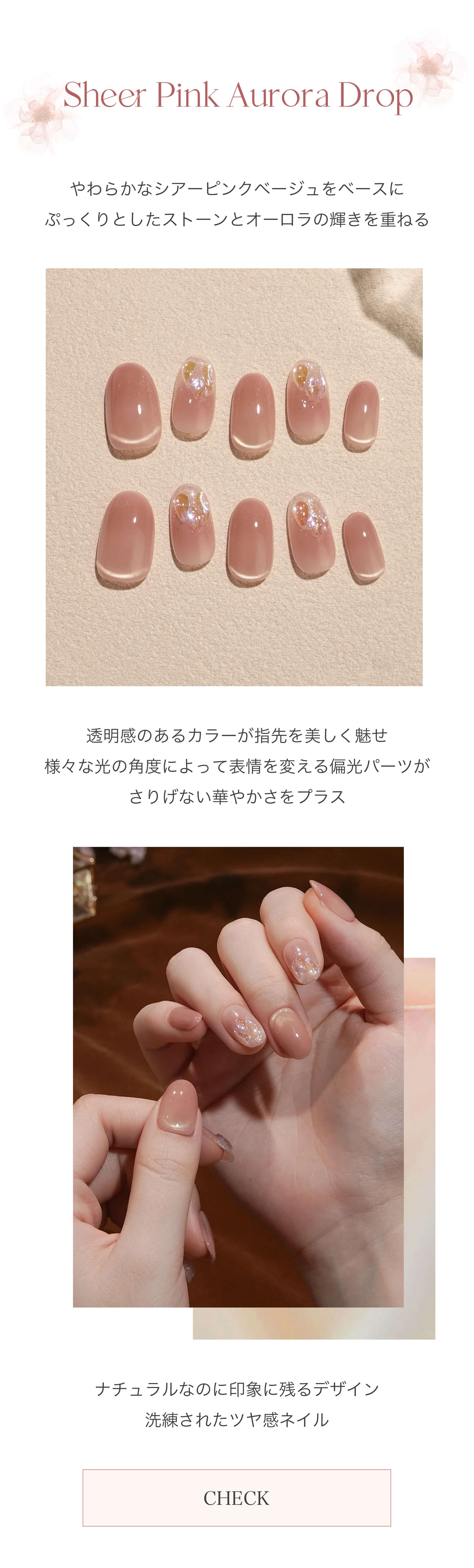 【一部当日発送】水光ネイルピンクマグネットオーロラシアーラインショートラウンドネイルチップ